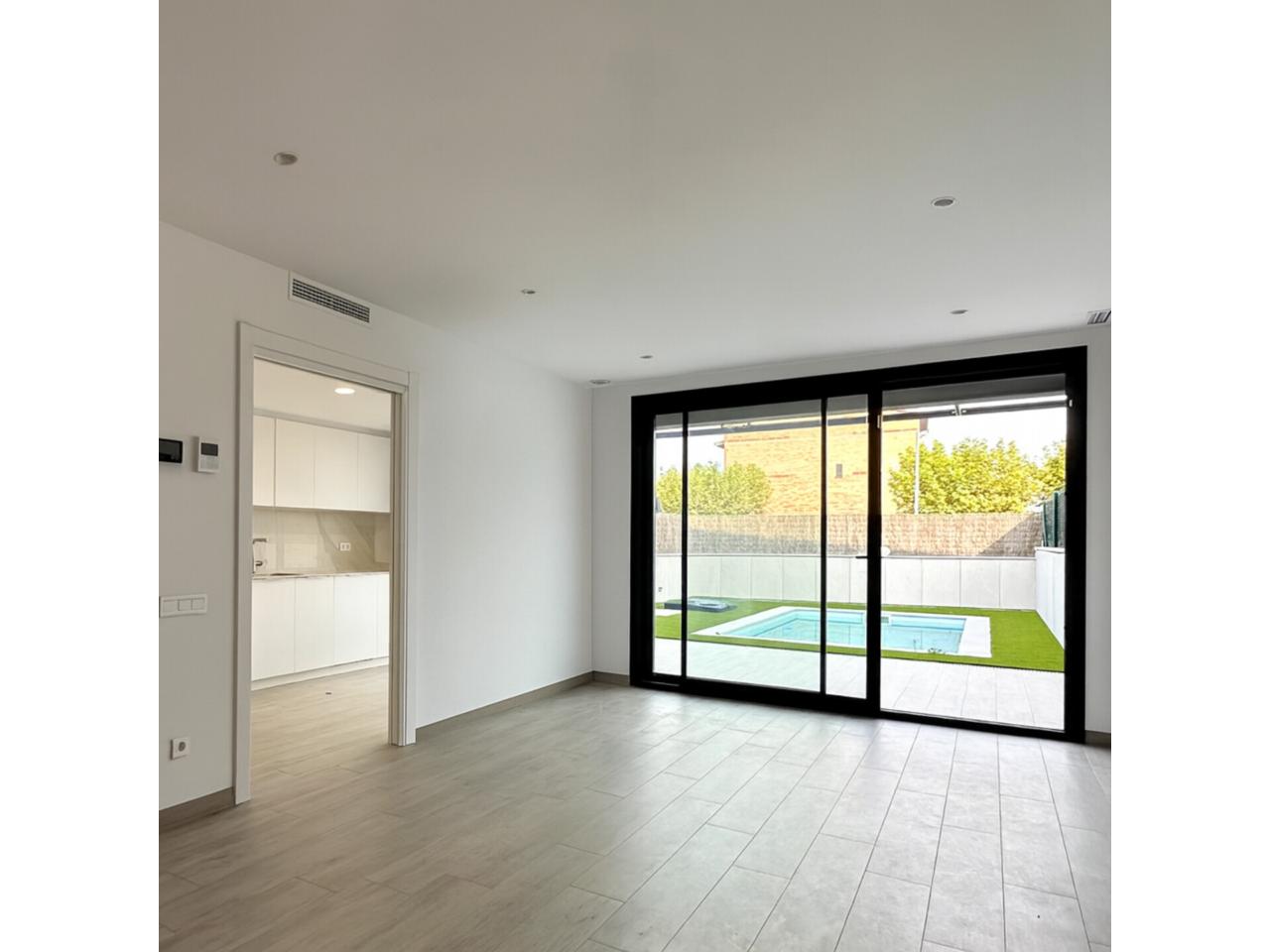 Planta principal: dispone de un luminoso salón comedor con acceso directo al jardín, amplia cocina con salida a la piscina, un baño completo y garaje privado para un coche. Además, encontrarás un patio delantero y un espacioso patio trasero con terraza cubierta tipo porche y piscina privada.